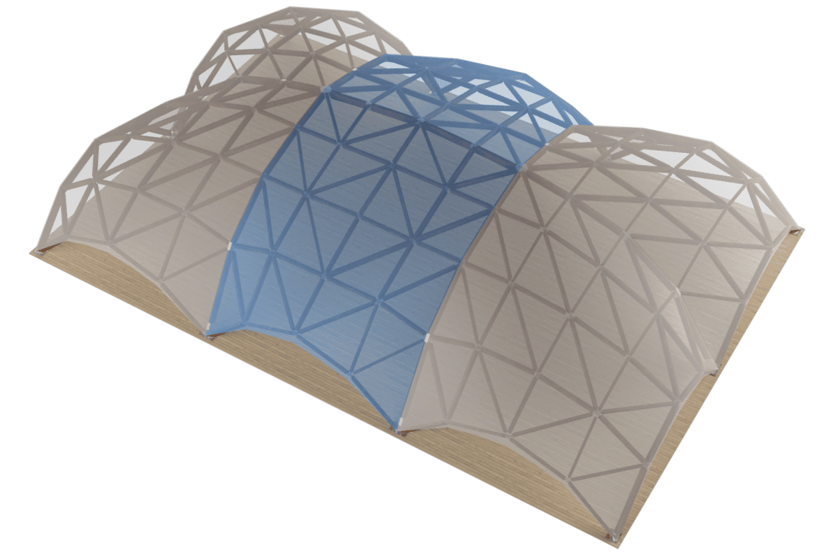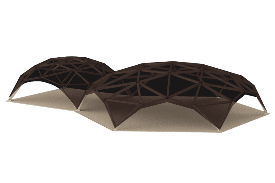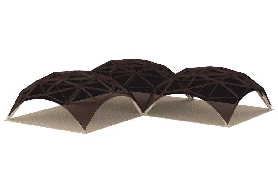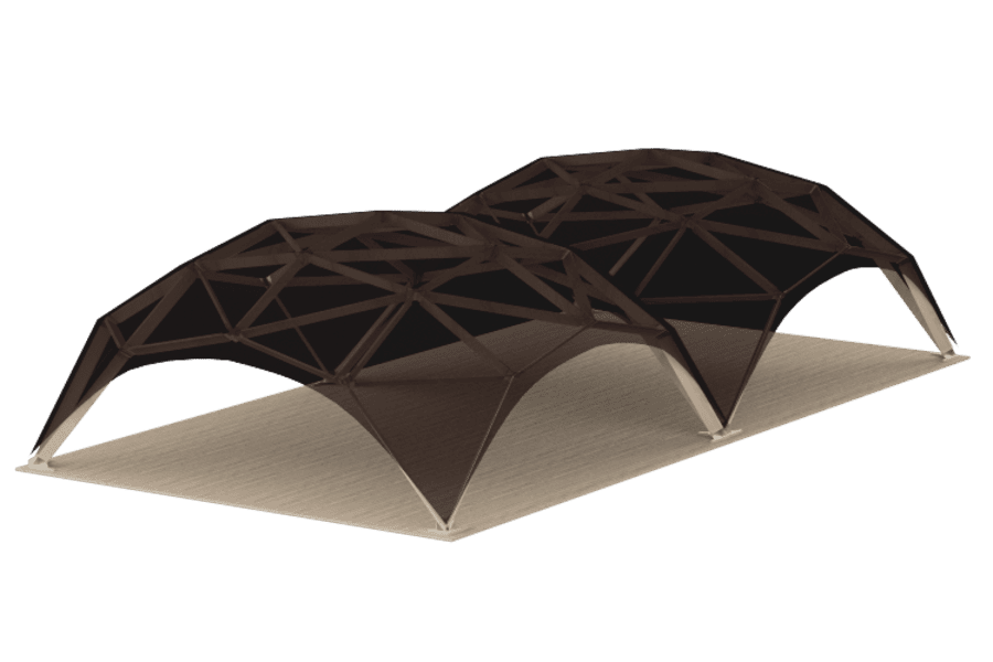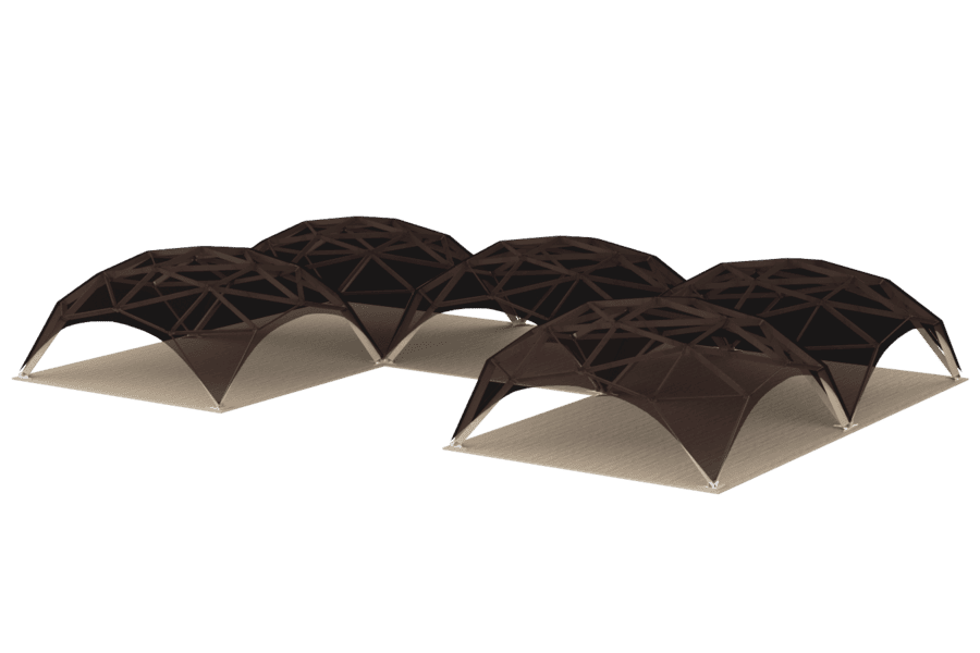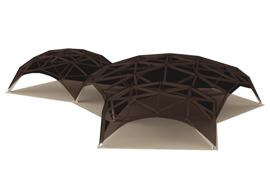 Koka teltis var savienot savā starpā, veidojot jebkuras formas figūras. Tajā pašā laikā četru kupolu teltis var būt dažāda izmēra un var būt arī savienotas viena ar otru. Piekaramo konstrukciju kopējā platība var sasniegt vairākus simtus kvadrātmetru. Tajā pašā laikā nav vēlams sakārtot konstrukcijas kvadrāta formā, jo var veidoties mitruma uzkrāšanās vieta.